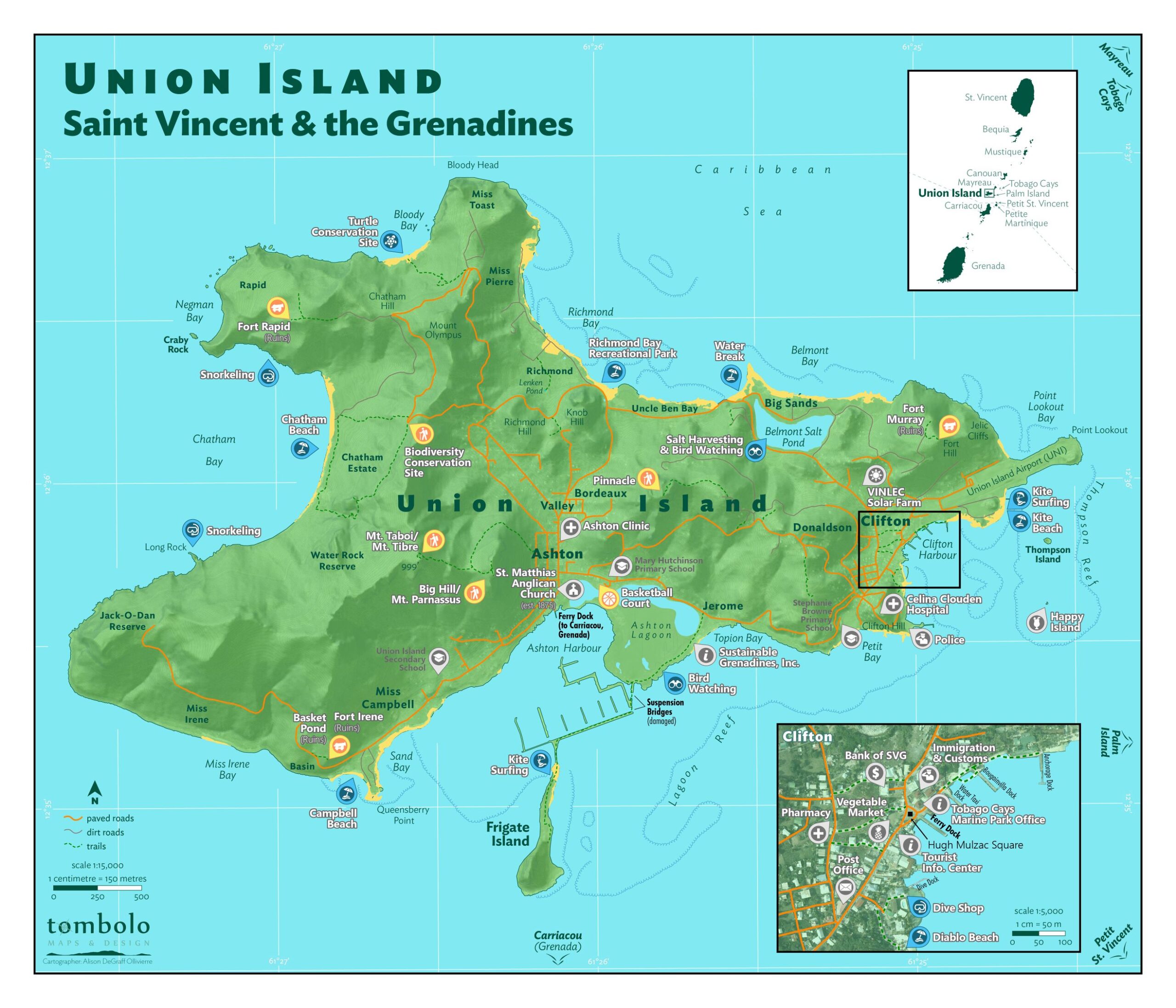 Often called the “Gateway to the Tobago Cays,” Union Island serves as a key departure point for excursions to one of the Caribbean’s most spectacular marine parks. Visitors can easily access world-class snorkeling, vibrant coral reefs, and protected lagoons teeming with marine life. The island’s strategic location makes it a hub for yachting, sailing, and day trips throughout the Southern Grenadines.